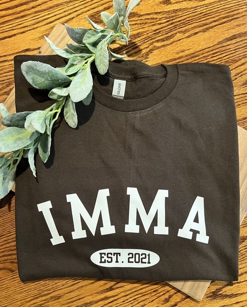 Shown in Chocolate brown (Gildan G500 Heavy Cotton), customizable colors available upon request.